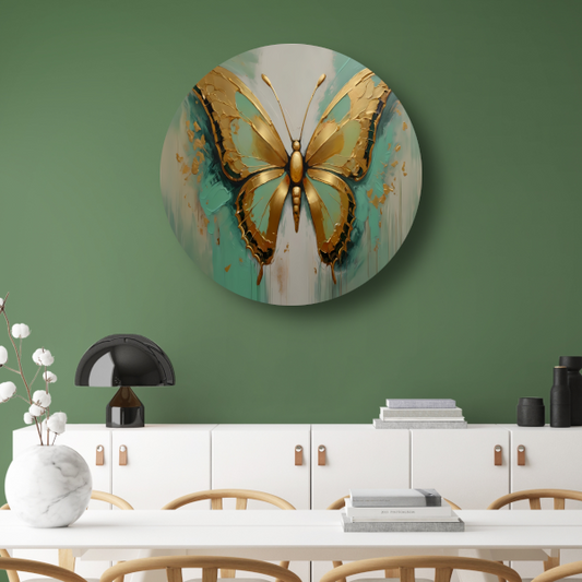 Gouden vlinder op lichtgroene olieverfachtergrond forex muurcirkel