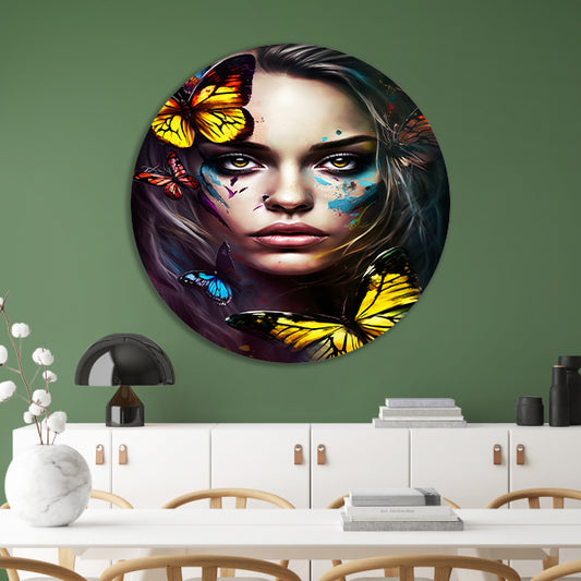 Betoverende Vrouw met Vlinders Portret aluminium muurcirkel