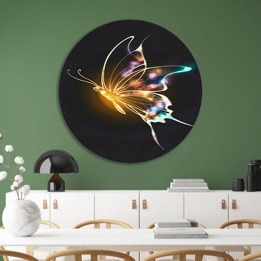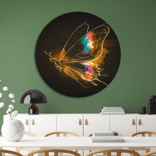 Kleurrijke Vlinder op Donkere Abstracte Achtergrond forex muurcirkel