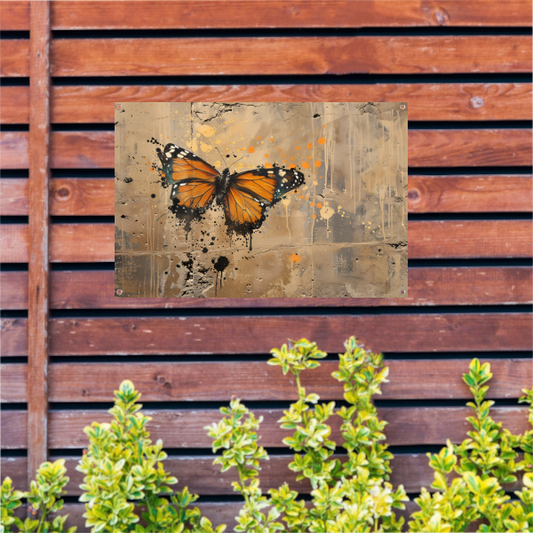 Rustende Vlinder in Oranje Zonsondergang tuinposter