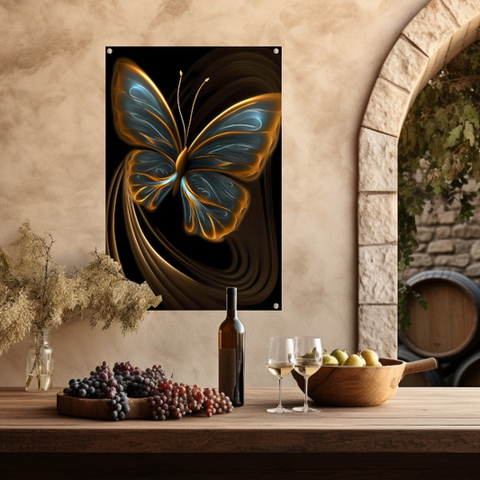 Abstracte Vlinder in Gouden Schittering tuinposter