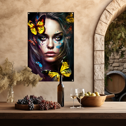 Betoverende Vrouw met Vlinders Portret tuinposter
