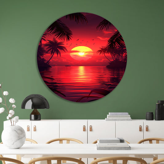 Tropische zonsondergang met palmbomen aluminium muurcirkel