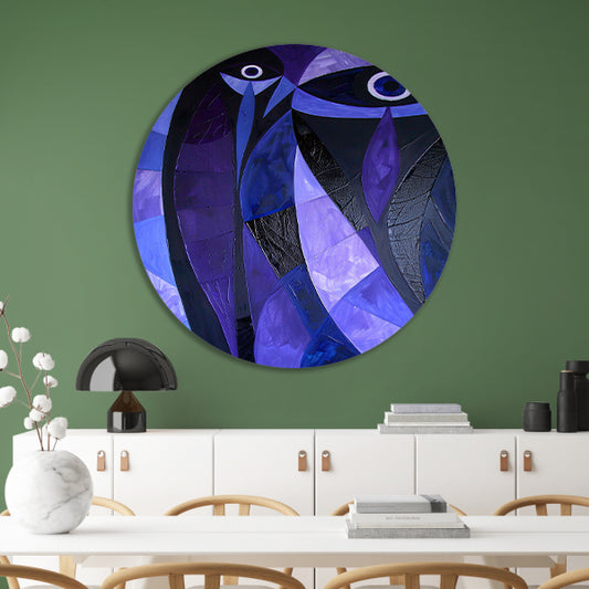 Kubistisch abstract vogelkunstwerk in paarstinten forex muurcirkel