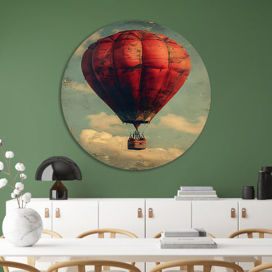 Vintage Luchtballon in Sepia Hemel aluminium muurcirkel
