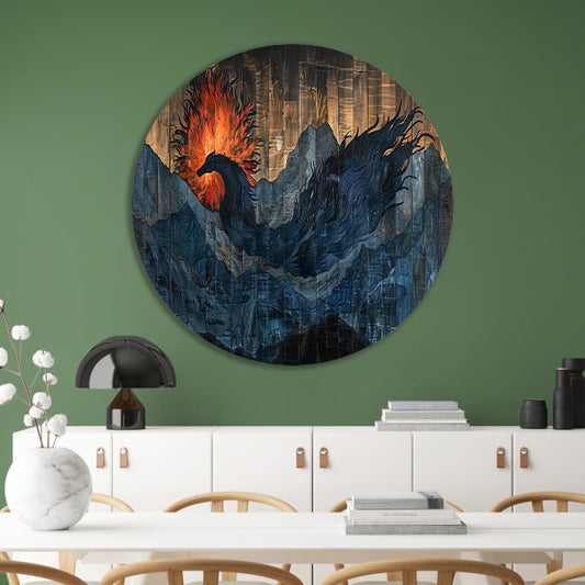Mystieke vogel in vurige berglandschappen forex muurcirkel