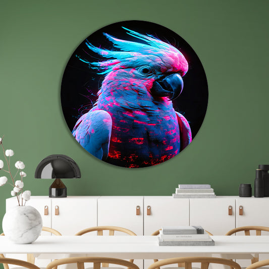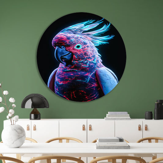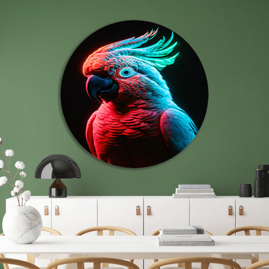 Futuristische neon papegaai in levendige kleuren forex muurcirkel