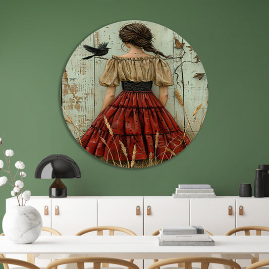 Abstract Vrouw bij Maan aluminium muurcirkel