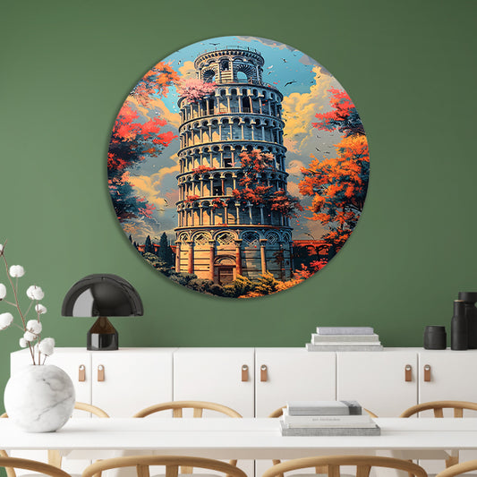 Herfstkleuren bij de Toren van Pisa aluminium muurcirkel