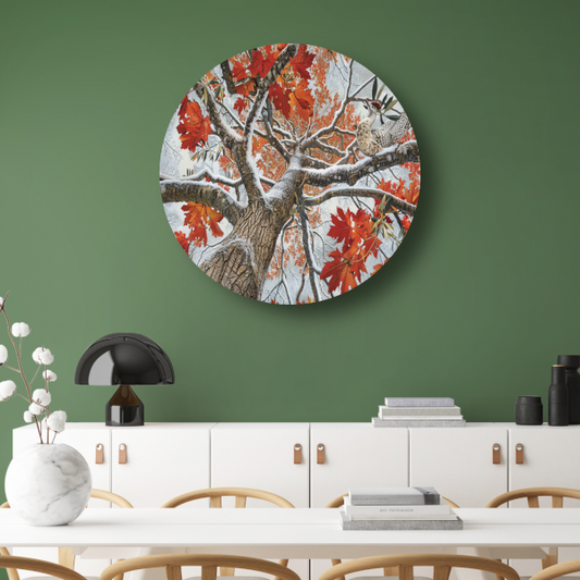 Roodborst in Herfstkleuren aluminium muurcirkel