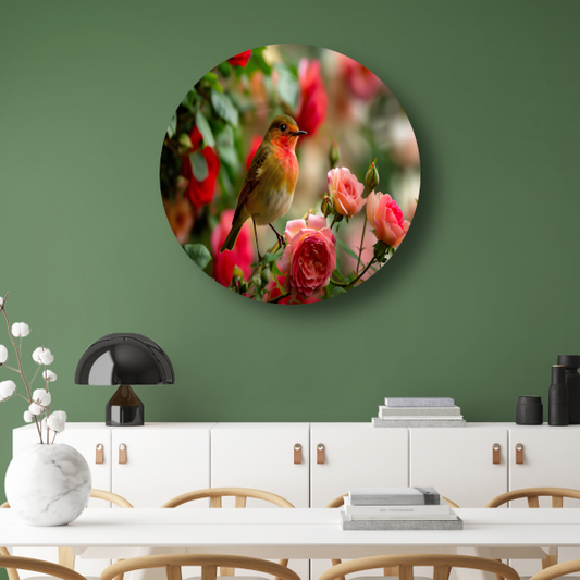 Vogel omhuld door roze rozenpracht forex muurcirkel