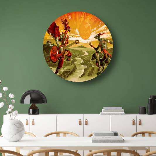 Kleurrijke Bloemen en Vogels in Kunstvorm aluminium muurcirkel