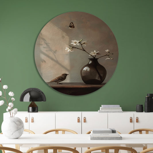 Stilleven met Vogel en Witte Bloesem forex muurcirkel