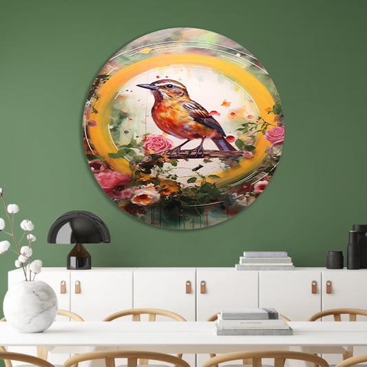 Kleurrijke vogel in Art Nouveau stijl aluminium muurcirkel