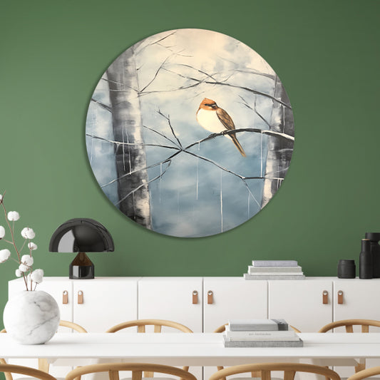 Winterse rustplaats voor een solitaire vogel aluminium muurcirkel