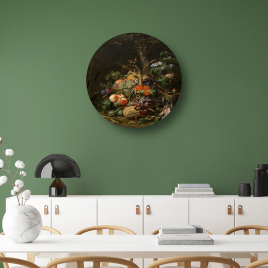 Stilleven met fruit, vis en een nest - Abraham Mignon forex muurcirkel