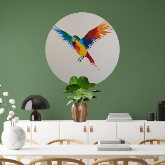 Kleurrijke Abstracte Vogel in Beweging forex muurcirkel