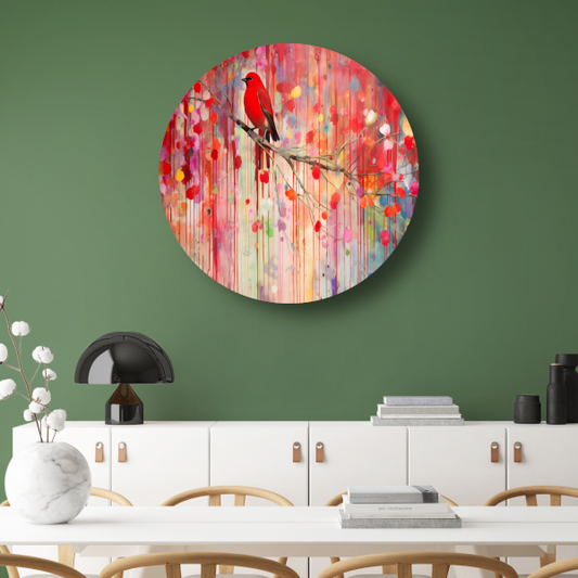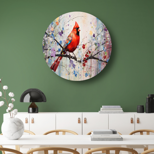 Schilderij: Rode kardinaal, bloemen forex muurcirkel