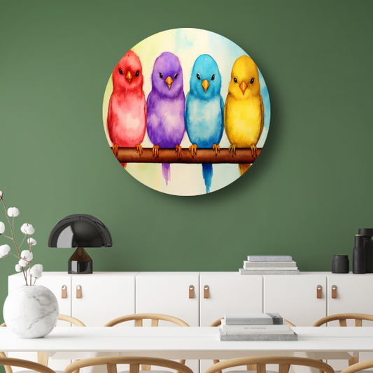 Gezellige kleurrijke vogels op een tak forex muurcirkel