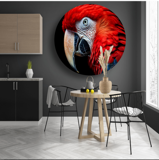 Hyperrealistische Rode Papegaai op Zwarte Achtergrond forex muurcirkel