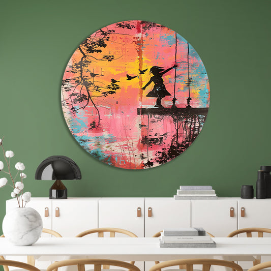 Meisje op schommel met vogels forex muurcirkel