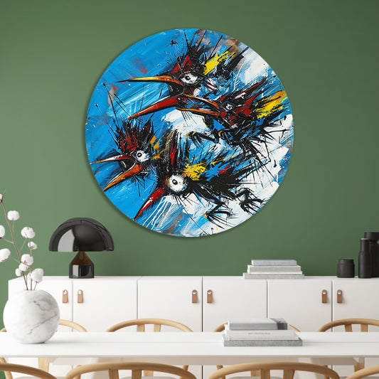 Abstracte Vogels in Kleurrijke Chaos forex muurcirkel