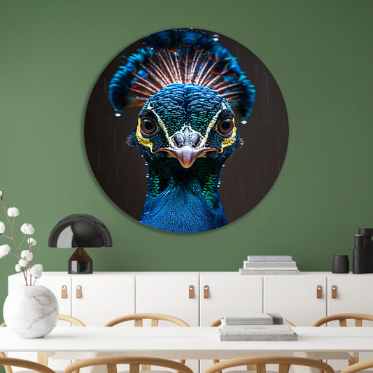 Close-up portret van een pauw in de regen forex muurcirkel
