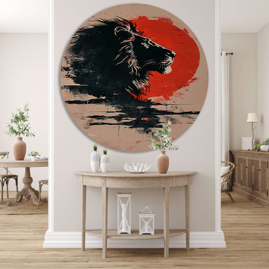 Silhouet van een trotse leeuw bij zonsondergang forex muurcirkel