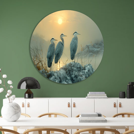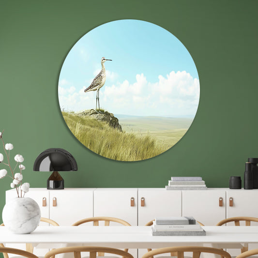 Elegante vogel op een grasheuvel schilderij forex muurcirkel