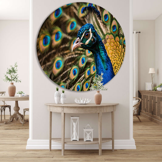 Kleurrijke close-up van een prachtige pauw forex muurcirkel