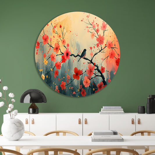 Kleurrijke abstracte vogel kunstprint aluminium muurcirkel