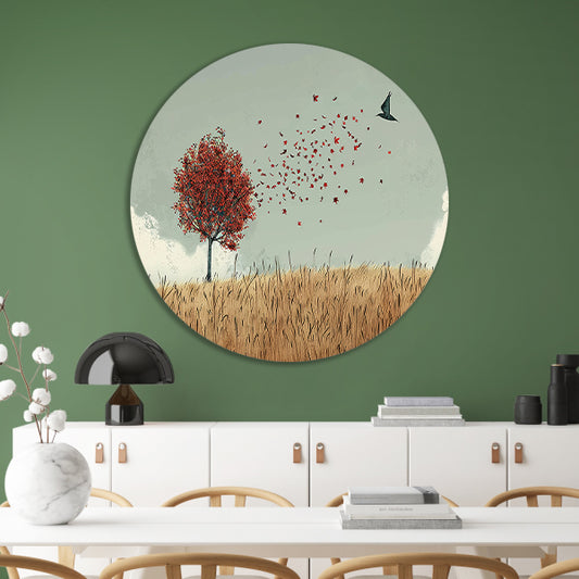 Minimalistische herfstboom met dwarrelende bladeren forex muurcirkel