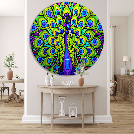 Kleurrijke pop art pauw schilderij forex muurcirkel