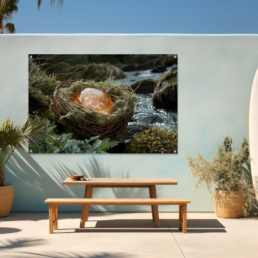 Vogelnest met glasbal in slaapkamer tuinposter