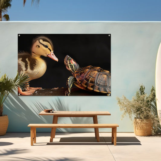 Schildpad en eend: onwaarschijnlijke vriendschap tuinposter