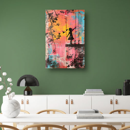 Meisje op schommel met vogels acrylglas