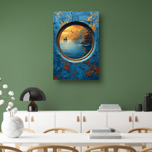 Zeegezicht met schepen en vogel bij zonsondergang canvas
