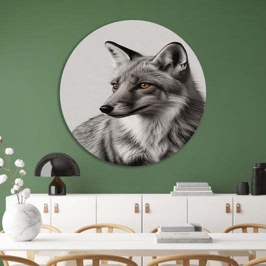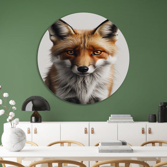 Intense blik van een majestueuze vos aluminium muurcirkel