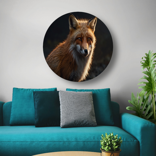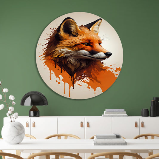 Vurige Vos - Modern Ontwerp in Warme Tinten aluminium muurcirkel