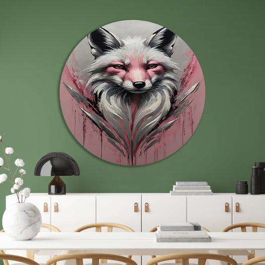 Abstracte vos in roze en zilver aluminium muurcirkel