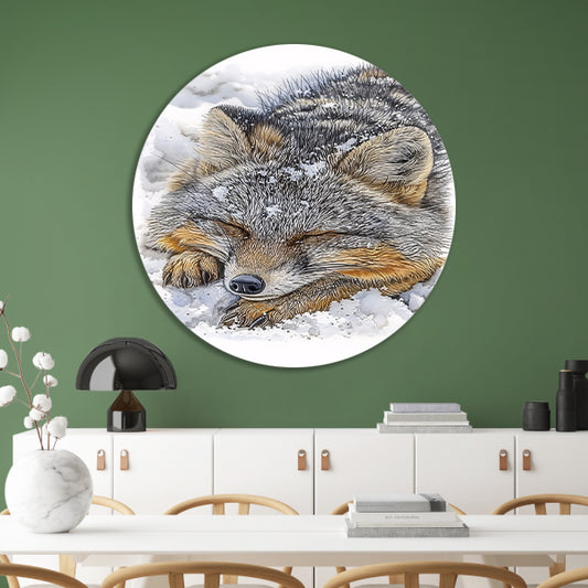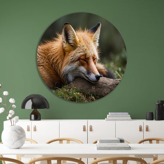 Gedetailleerd schilderij van een slapende vos aluminium muurcirkel