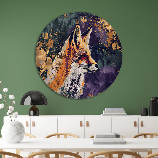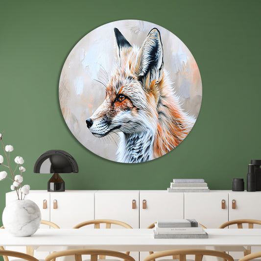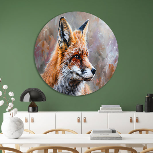 Gedetailleerd realistisch schilderij van een vos aluminium muurcirkel