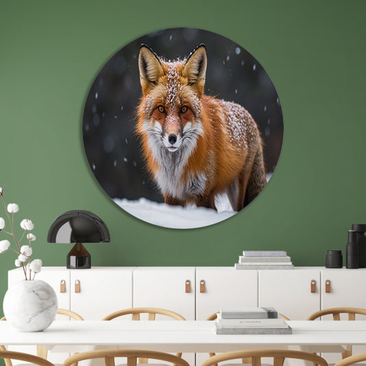 Majestueuze vos in een sneeuwlandschap aluminium muurcirkel
