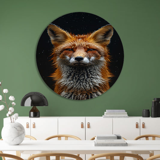 Realistisch en gedetailleerd schilderij van een vos aluminium muurcirkel