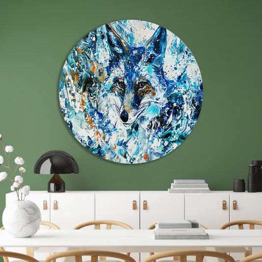 Kleurrijke abstracte vossenkop aluminium muurcirkel