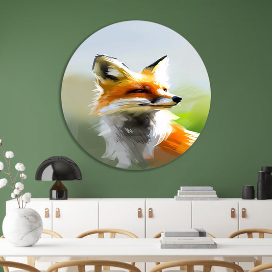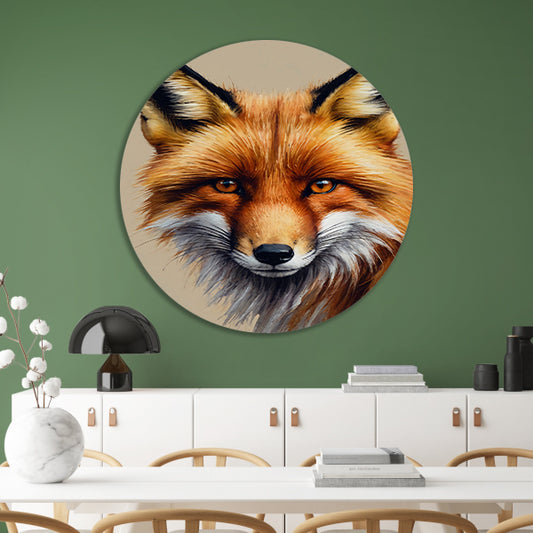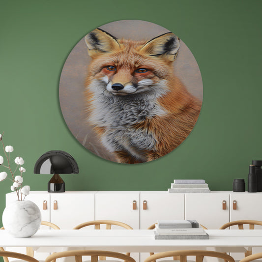 Gedetailleerd schilderij van een vos aluminium muurcirkel