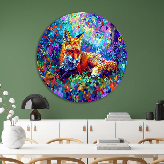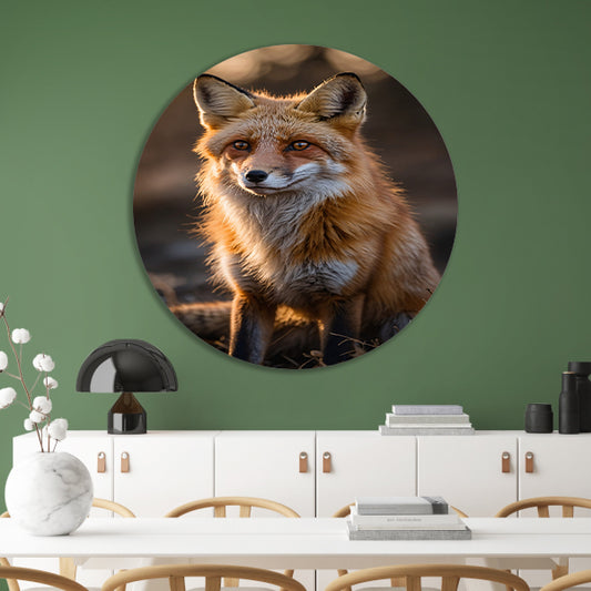 Mysterieuze vos in dynamische rustieke stijl aluminium muurcirkel