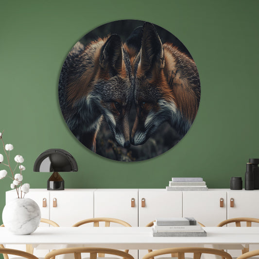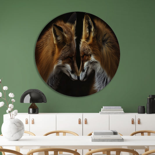 Intiem moment tussen twee vossen aluminium muurcirkel