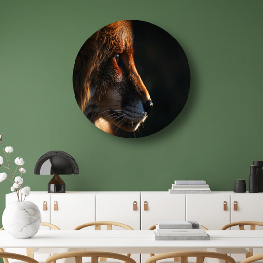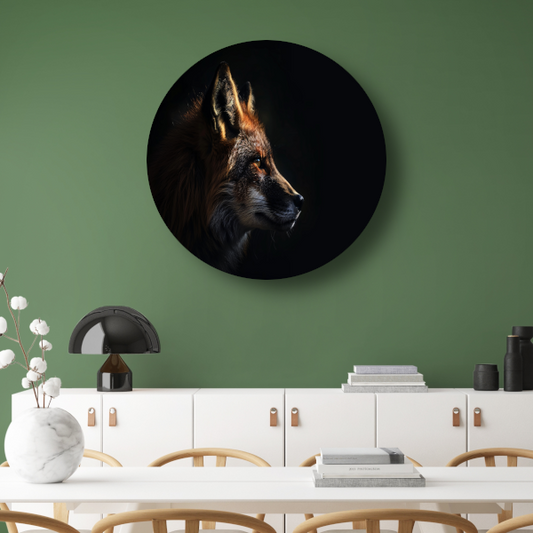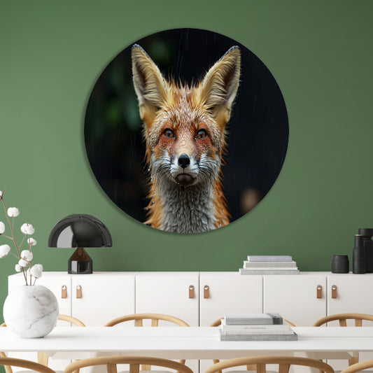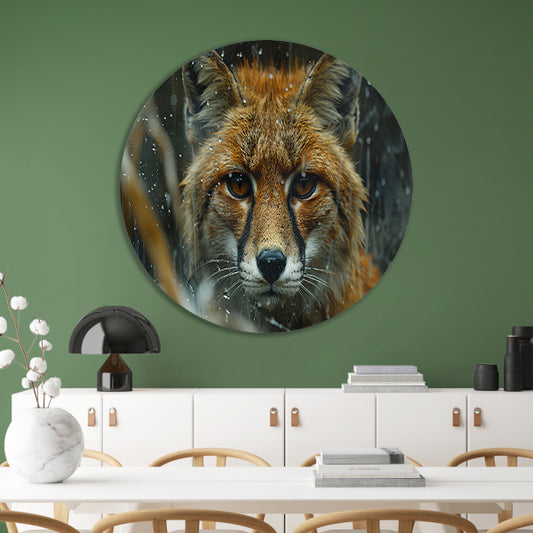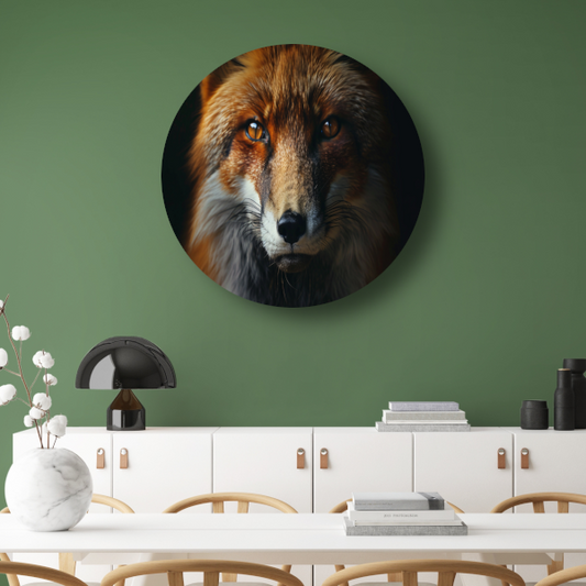 Intrigerende vos in schemerlicht aluminium muurcirkel