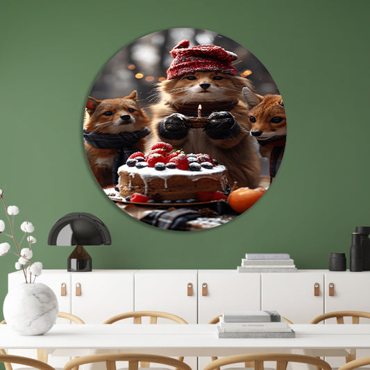 Vos Viert Verjaardag in Winterbos aluminium muurcirkel